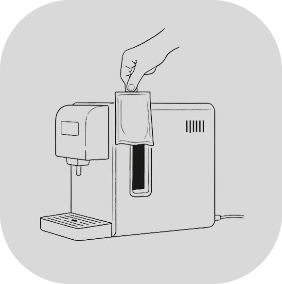 The machine dispenses fresh decoction blended with milk, water, and sweetness.